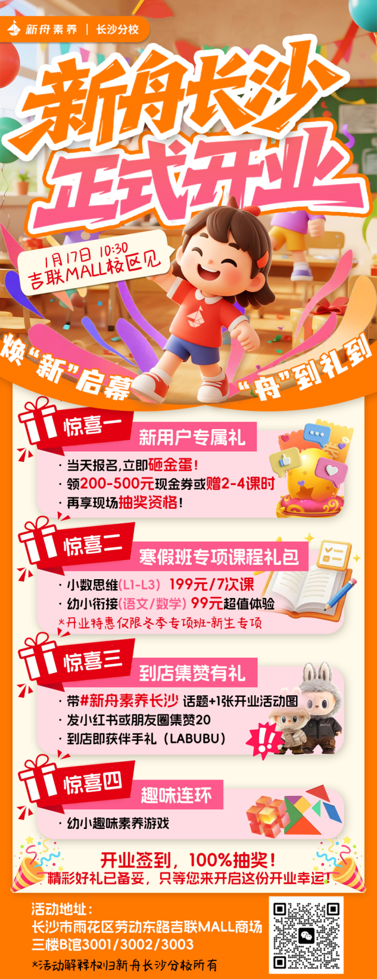 好消息!新舟长沙吉联Mall校区,正式开业!