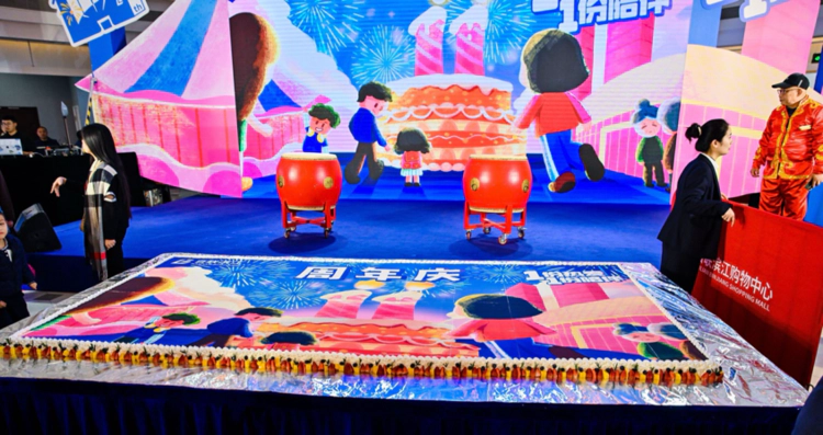 傍晚六点,整个庆典的氛围被推至温情而热烈的顶点。一个长达数米的巨型生日蛋糕,在众人期盼的目光和手机镜头的聚焦下,宛如明星般缓缓登场。当烛光亮起,自发形成的沪语版《生日快乐》大合唱响彻中庭,这熟悉又亲切的旋律,让整个空间充满了家庭的温暖。孩子们踮着脚,眼睛紧盯着蛋糕,工作人员细心地将这份甜蜜一一分发,每个人脸上都洋溢着幸福的笑容。这一刻,蛋糕不再只是甜点,而是十一年来“一份陪伴”的最甜美见证。