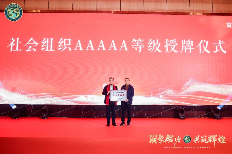 杭州市民政局党组成员、二级巡视员张志刚为会长彭中云颁发社会组织AAAAA等级牌匾