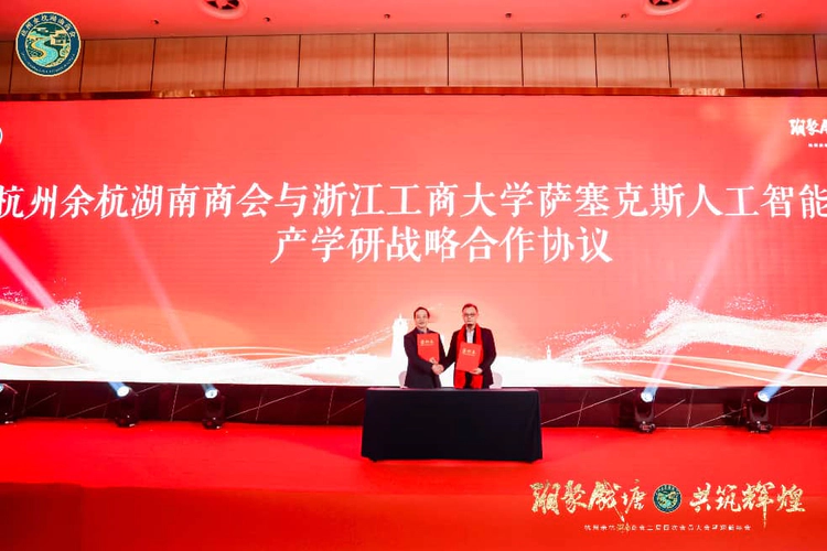 会长彭中云与浙江工商大学人工智能学院谢满德院长签定产学研战略合作协议