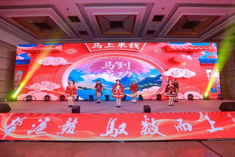 节目展演以一场气势磅礴的《万马奔腾》开场舞拉开帷幕,瞬间点燃全场热情。舞者们迈着铿锵有力的步伐,舞姿舒展奔放,配以激昂的旋律与灵动的灯光,将骏马奔腾的雄姿展现得淋漓尽致。蹄声如雷的舞蹈意象,恰是赣商儿女勇立潮头、一往无前的精神写照,刚劲豪迈的表演不仅带来强烈的视觉冲击,更传递出赣商群体拼搏进取的精气神,赢得全场阵阵掌声。