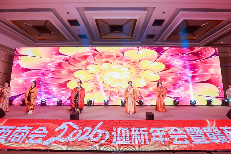 东区区长雷洪敏带领企业家们精心准备的歌曲串烧与舞蹈,则以动感节奏点燃全场氛围。从经典旋律到时代热曲,从深情吟唱到活力起舞,跨越时光的视听表达,既展现了东区会员的多才多艺,更以青春姿态诠释了赣商精神的传承与创新,台下掌声与欢呼声此起彼伏。