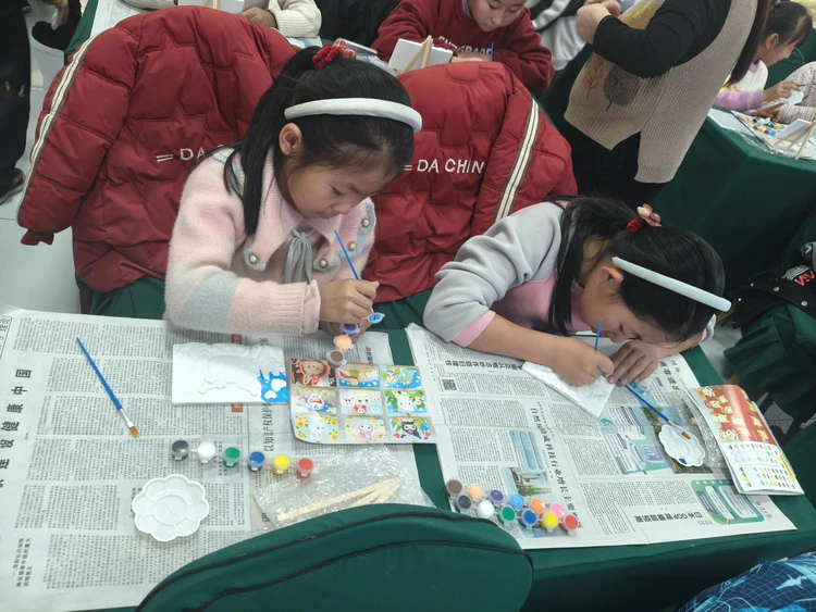 在志愿者细致指导下,孩子们大胆调配颜色、发挥想象,家长则在旁协助调色、清洗画笔。亲子协作之间,素白的石膏胚渐渐绽放出斑斓色彩,成为每个家庭独一无二的创意珍藏,也记录下亲子共处的温馨时光。