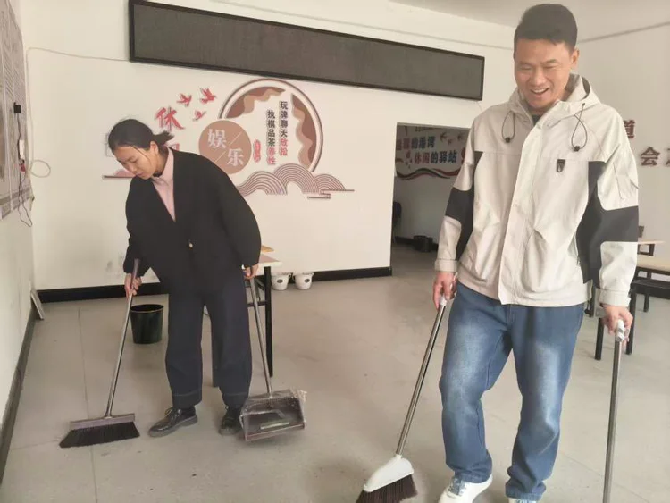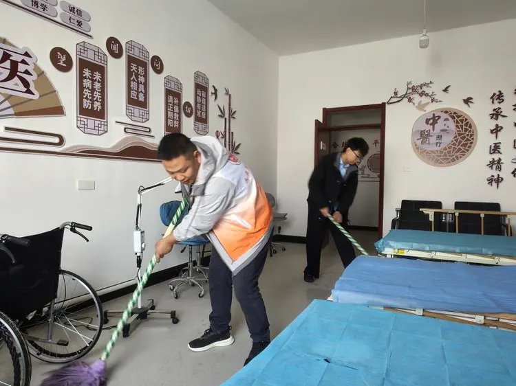活动中,志愿者们分工协作、干劲十足。在日间照料中心内,大家仔细擦拭走廊扶手、清洁墙面标识,认真清扫中医理疗室等功能区域,不放过任何卫生死角,让养老服务场所焕然一新,切实为老年人提供了整洁宜居的活动空间。在中心公共区域,志愿者们对健康教育宣传栏进行全面清洁擦拭,确保健康科普内容清晰可见,既美化了社区环境,也让健康知识更好地传递给辖区居民。