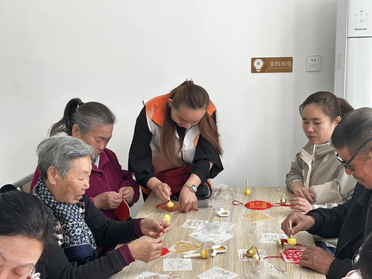 3 月 25 日 “快乐相伴・巧手暖心” 活动以团队协作与正向引导为核心,趣味传杯游戏让组员在相互配合中增强信任,“心情加油站” 环节里,大家主动分享生活中的开心小事,相互点赞送祝福,现场充满正能量。拓印洒金福卡风铃制作过程中,组员们互帮互助,擅长手工的组员主动协助行动不便的同伴,在协作中深化了友谊。